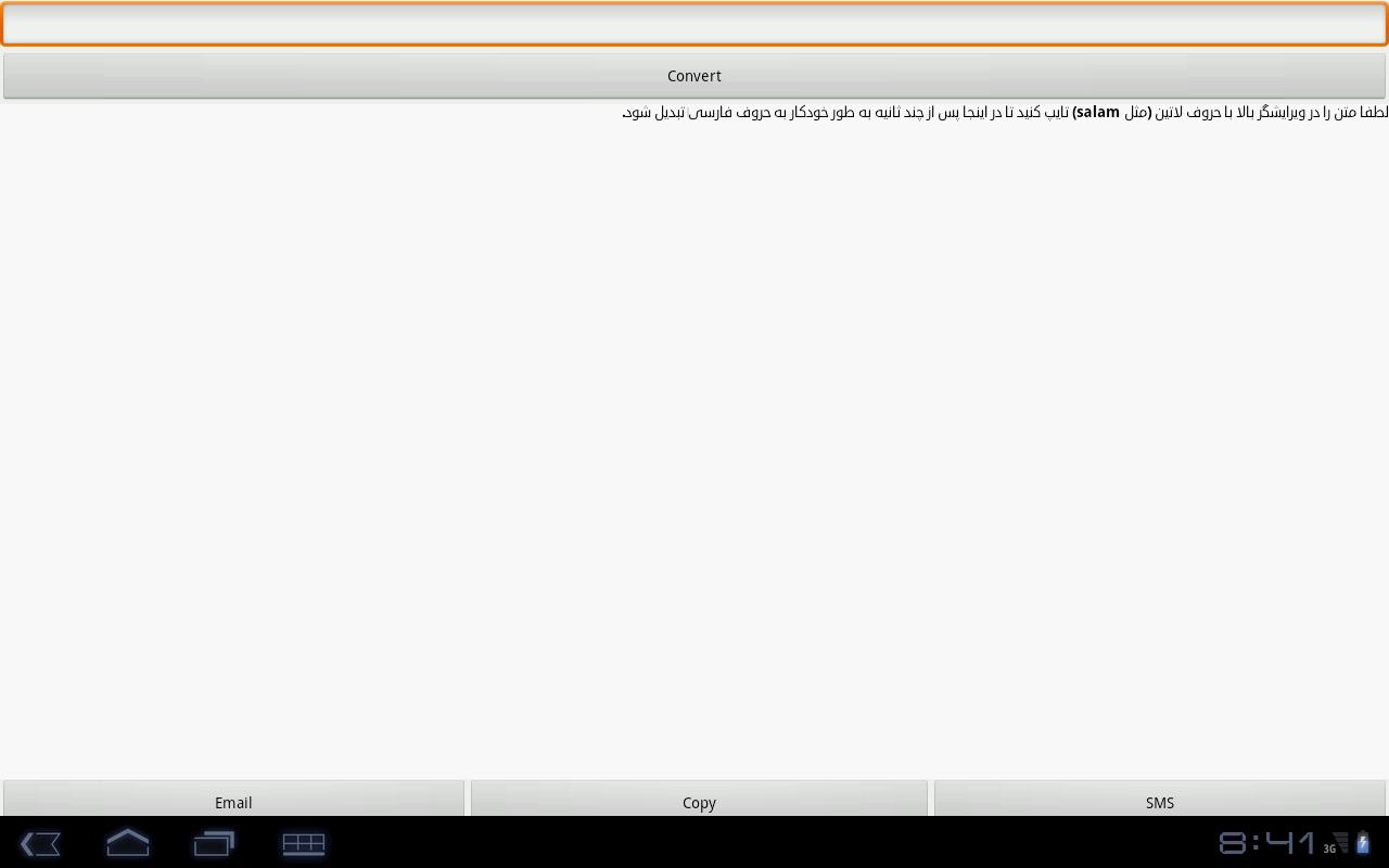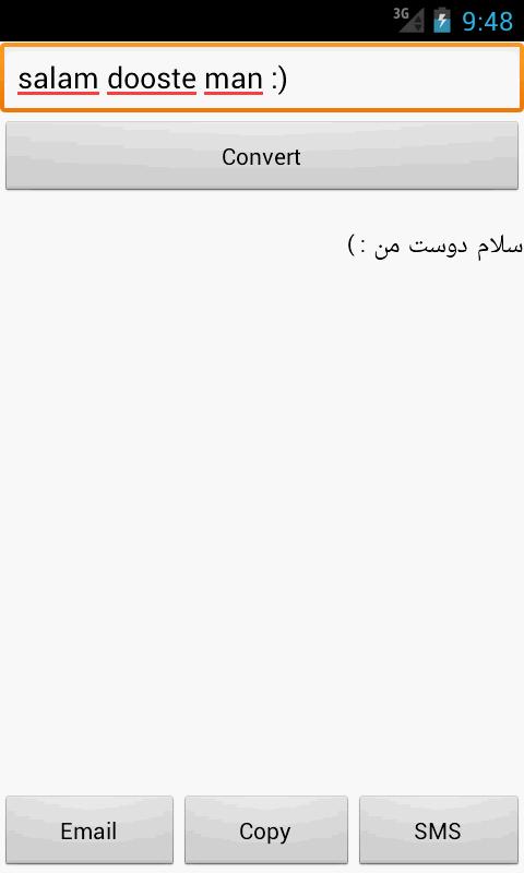 With this application you can convert (transliterate) persian written in english letters, called Pinglish or Finglish, to persian language script.