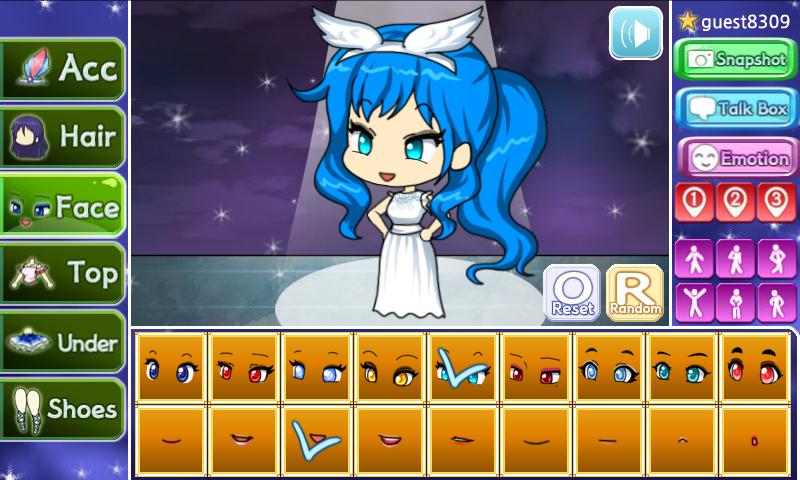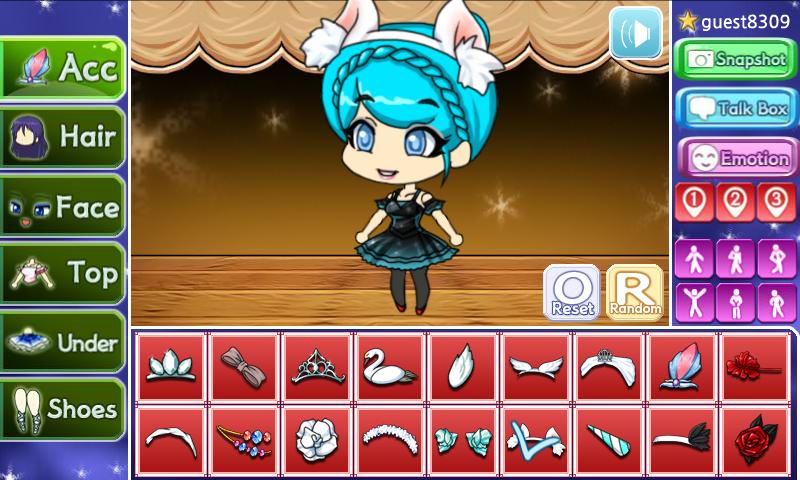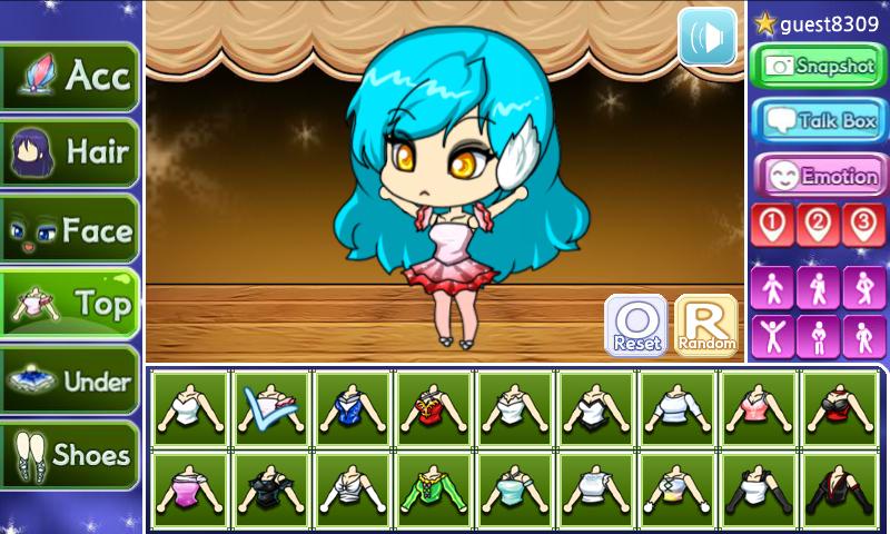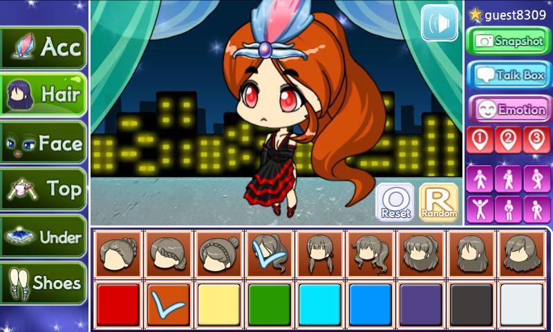 Faites votre propre jolie fille fraîche avec divers cheveux, costumes et accessoires.