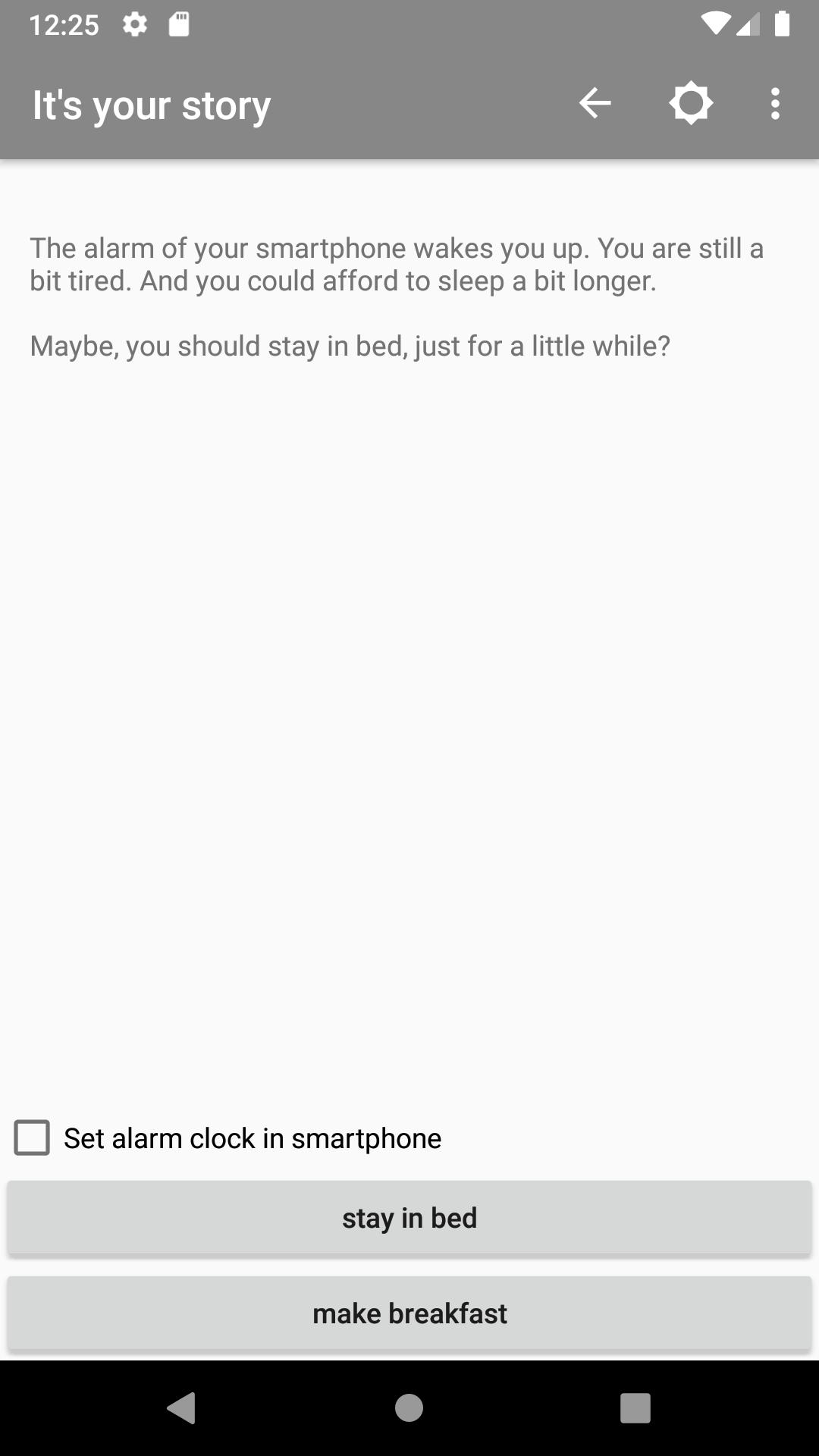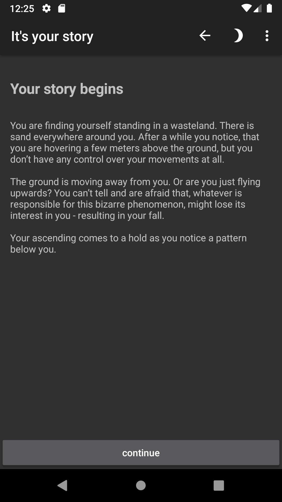 Je programmer cette application pendant mon temps libre et je ne gagne pas d'argent avec. Il n'y aura pas d'ajouts. Non dans l'achat d'applications. Et comme c'est «juste» une aventure en texte, je n'ai pas besoin d'autorisations de votre appareil.