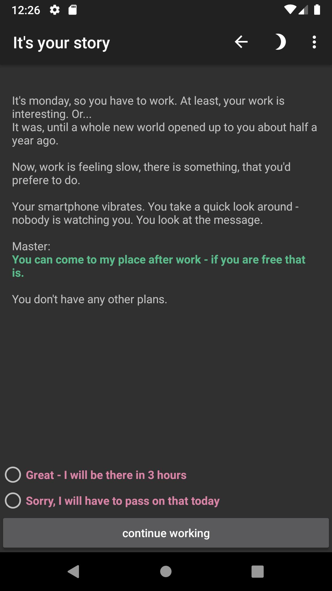 Ceci est un choix de texte, choisissez votre propre application d'aventure. Vous êtes le protagoniste, alors faites ce que vous voulez ^ __ ^