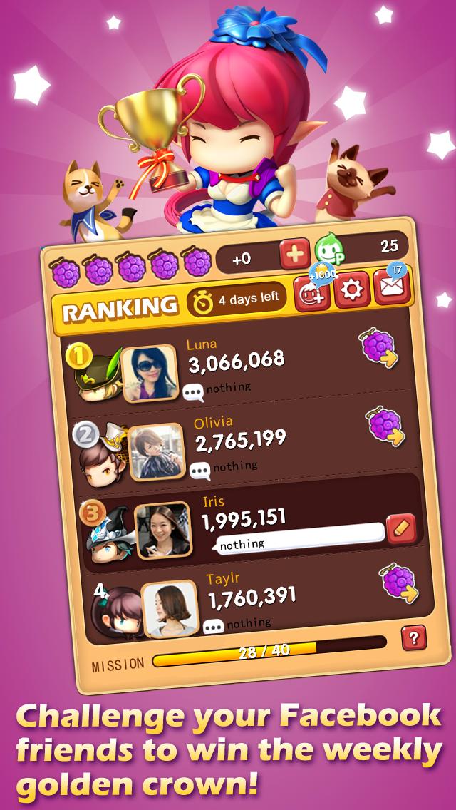 - Jouez avec vos amis Facebook à tout moment et défiez-les pour gagner la couronne d'or hebdomadaire