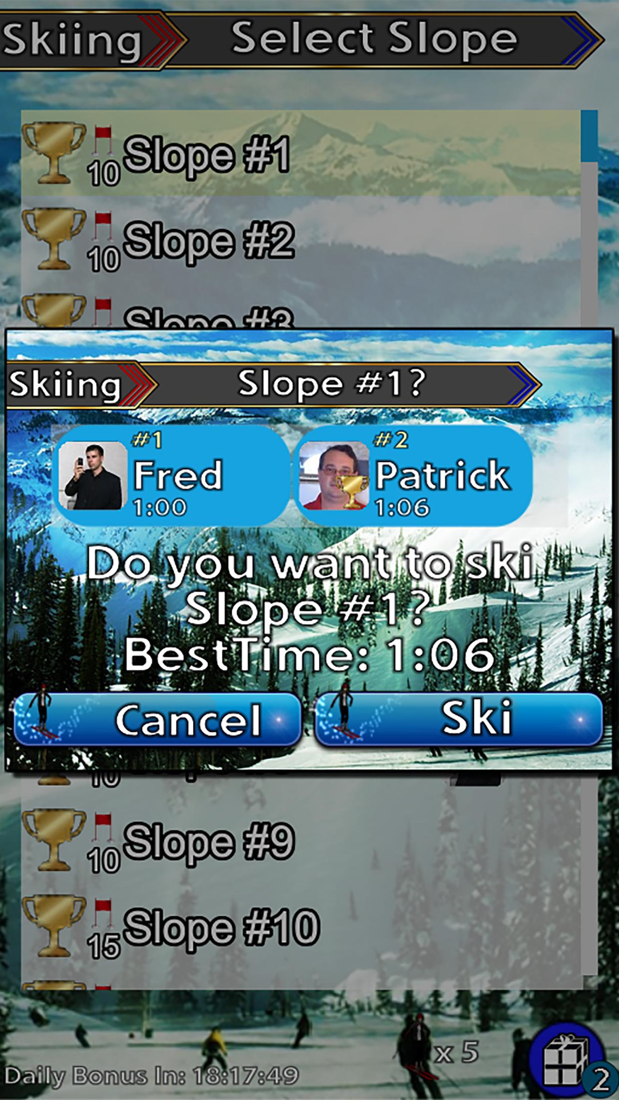 Testez vos compétences en ski sur plus de 200 pentes et rivalisez avec vos amis Facebook.