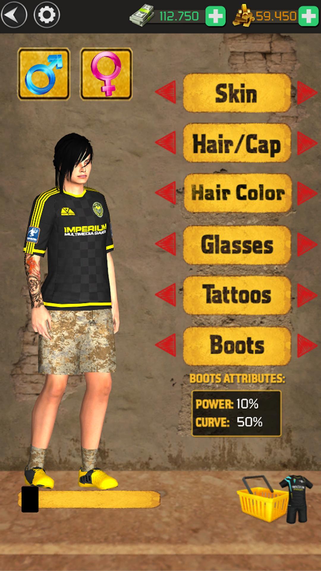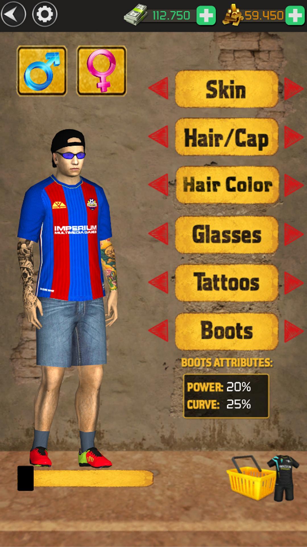 Battez le gardien de but! Collectez de nouvelles boules, vêtements, poils et verres et créez votre joueur de rêve!