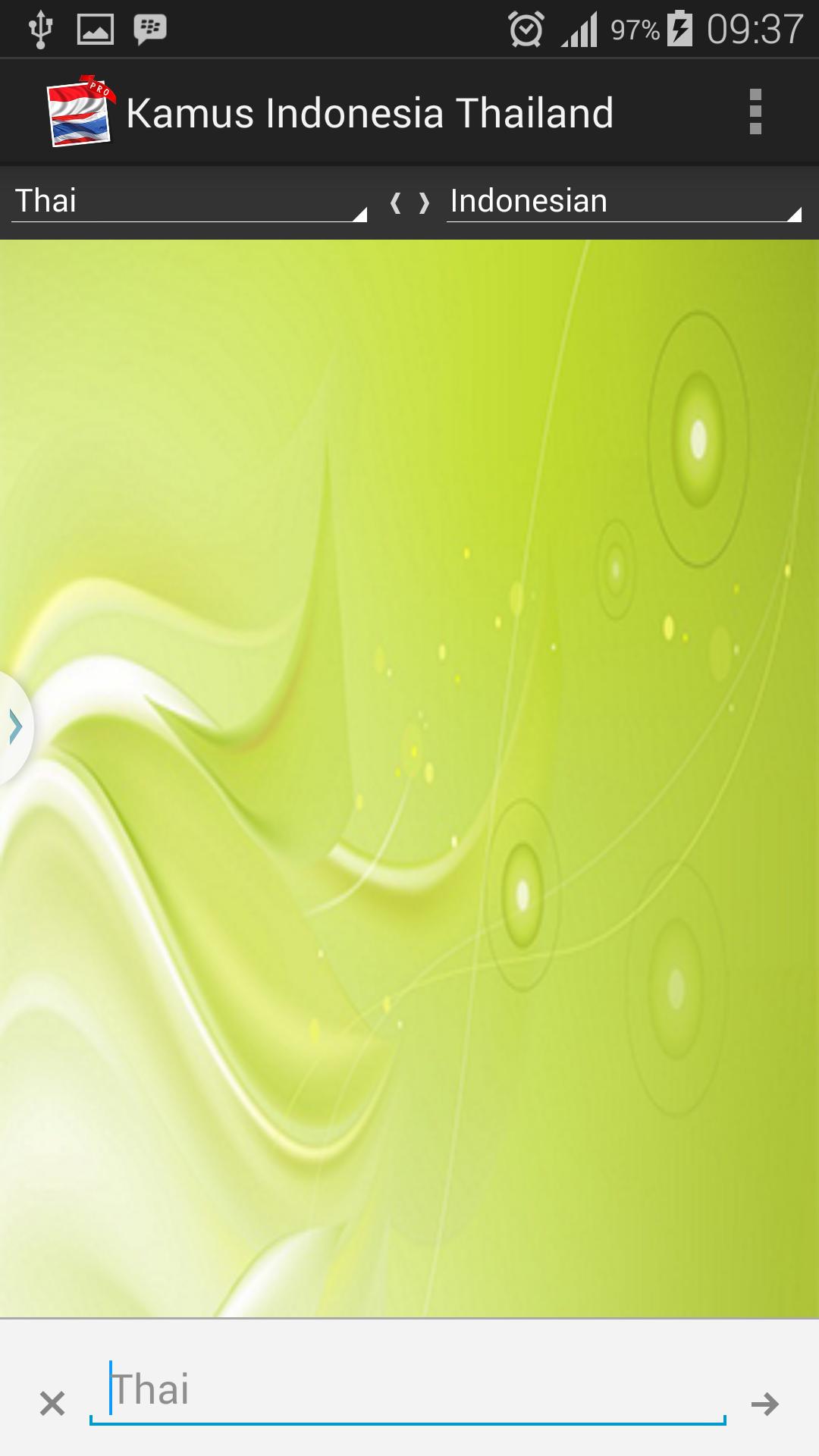 Cette application est l'un des traducteurs et dictionnaires les plus complets qui peuvent être trouvés sur le marché Android aujourd'hui. Vous pouvez traduire complètement les mots de l'Indonésien vers la Thaïlande sans limite et vice versa.