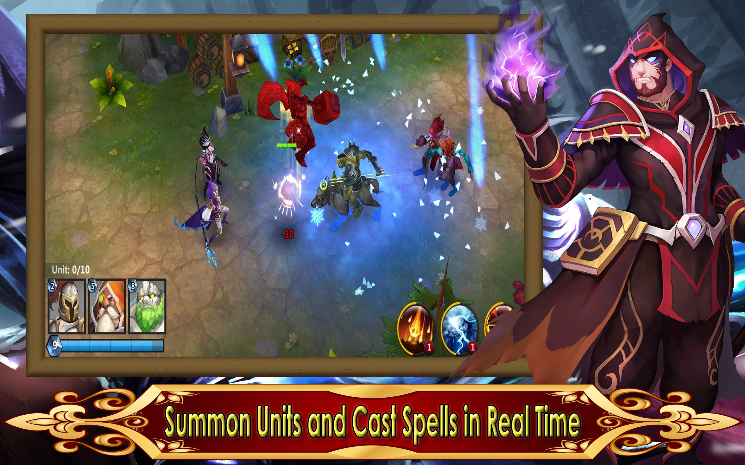 - C'est une ère de la magie, utilisez des commandes tactiles pour lancer des sorts magiques dans la chaleur de la bataille pour dévaster vos ennemis ou polir vos troupes. Sentez le moment wow où un blizzard placé avec précision fait tomber le Titan!