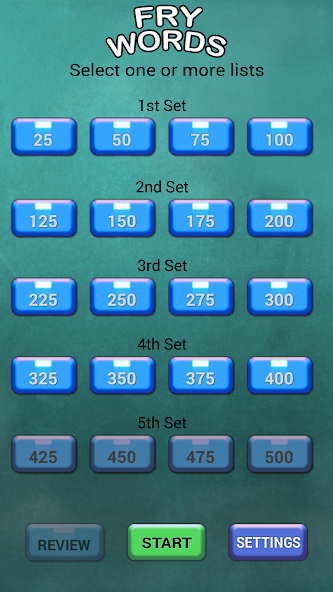 • Cards can be marked for the Review list (use the star to mark and settings to clear)