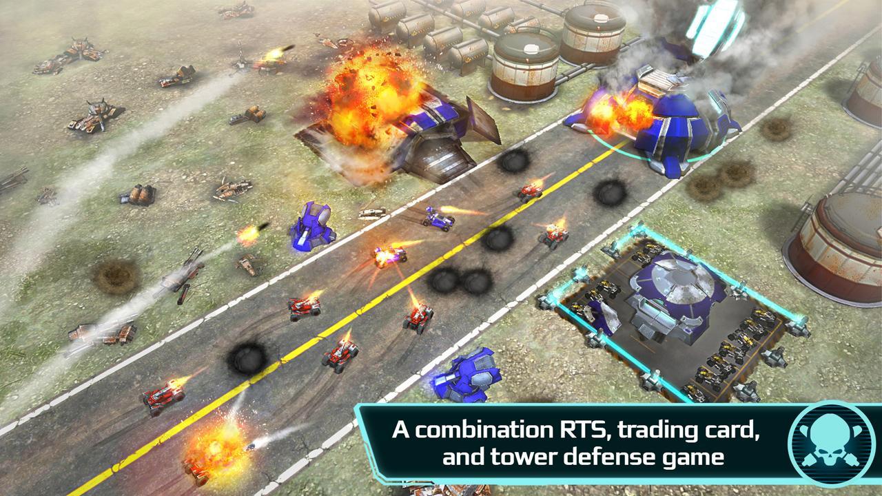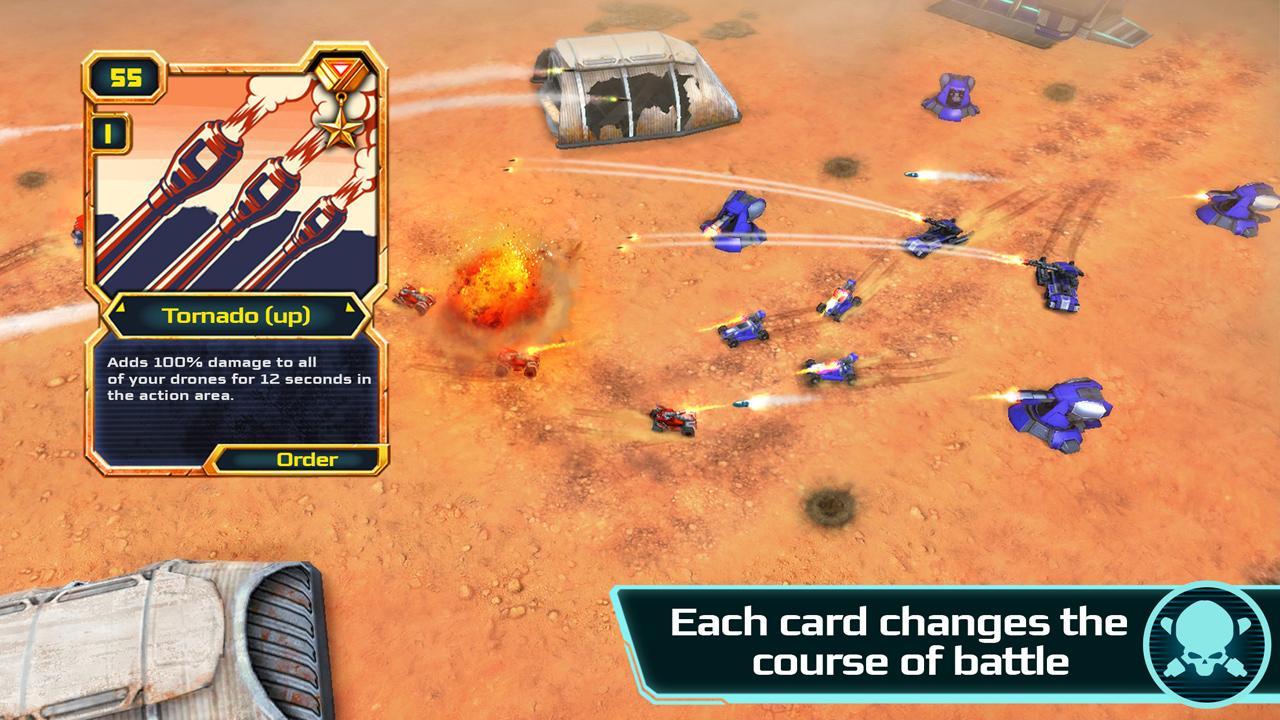 Command armies of drone tanks in this sci-fi strategy game that combines the classic gameplay of old school RTSs, trading card game tactics, and key elements of MOBA games.
