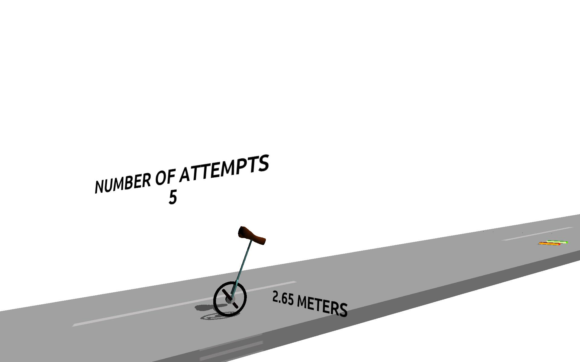 The gameplay is minimal: Ride your unicycle as far as possible, just do not topple over and crash. Balance is the mantra- As it is for a dancer on a tightrope in a circus!