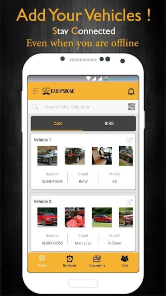 DaddysRoad menghubungkan Anda ke kendaraan Anda sepanjang waktu. Pada orang lain yang perlu menghubungi Anda dengan alasan apa pun yang terkait dengan kendaraan, mereka dapat langsung berkomunikasi menggunakan nomor plat kendaraan (tanpa mengungkapkan nomor ponsel). Kunci saja dalam nomor kendaraan atau pindai stiker kode QR dan berkomunikasi dengan pengguna kendaraan.