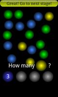 Ada 3 level kesulitan dalam game ini: mudah (satu warna), sedang (dua warna) dan keras (3 warna). Tingkat kesulitan yang lebih tinggi memberi Anda skor yang lebih tinggi. Ada juga tiga mode permainan: mode normal, cepat dan pelatihan. Dalam mode cepat, Anda bermain sampai kesalahan pertama, dan lingkaran ditampilkan untuk waktu yang lebih singkat. Mode ini memberi Anda skor tertinggi. Dalam mode pelatihan lingkaran ditampilkan selama yang Anda inginkan, sehingga Anda dapat menguji berapa banyak dari mereka yang dapat Anda ingat. Tidak ada skor yang diberikan dalam mode ini.