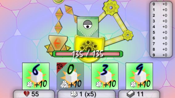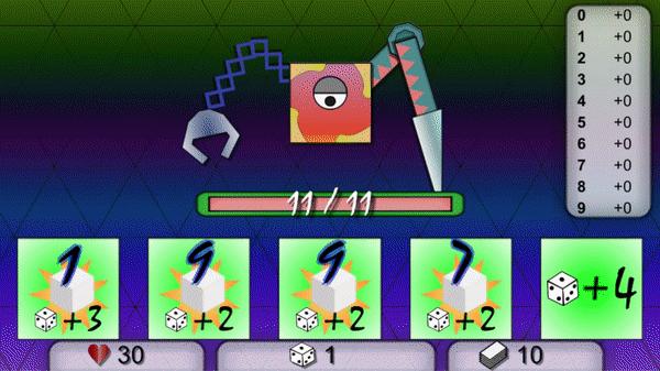 * Kartu yang dihasilkan secara prosedural, dengan efek seperti meningkatkan jumlah dadu Anda, memaksa atau melarang gulungan tertentu, atau bahkan mengubah jumlah sisi pada dadu