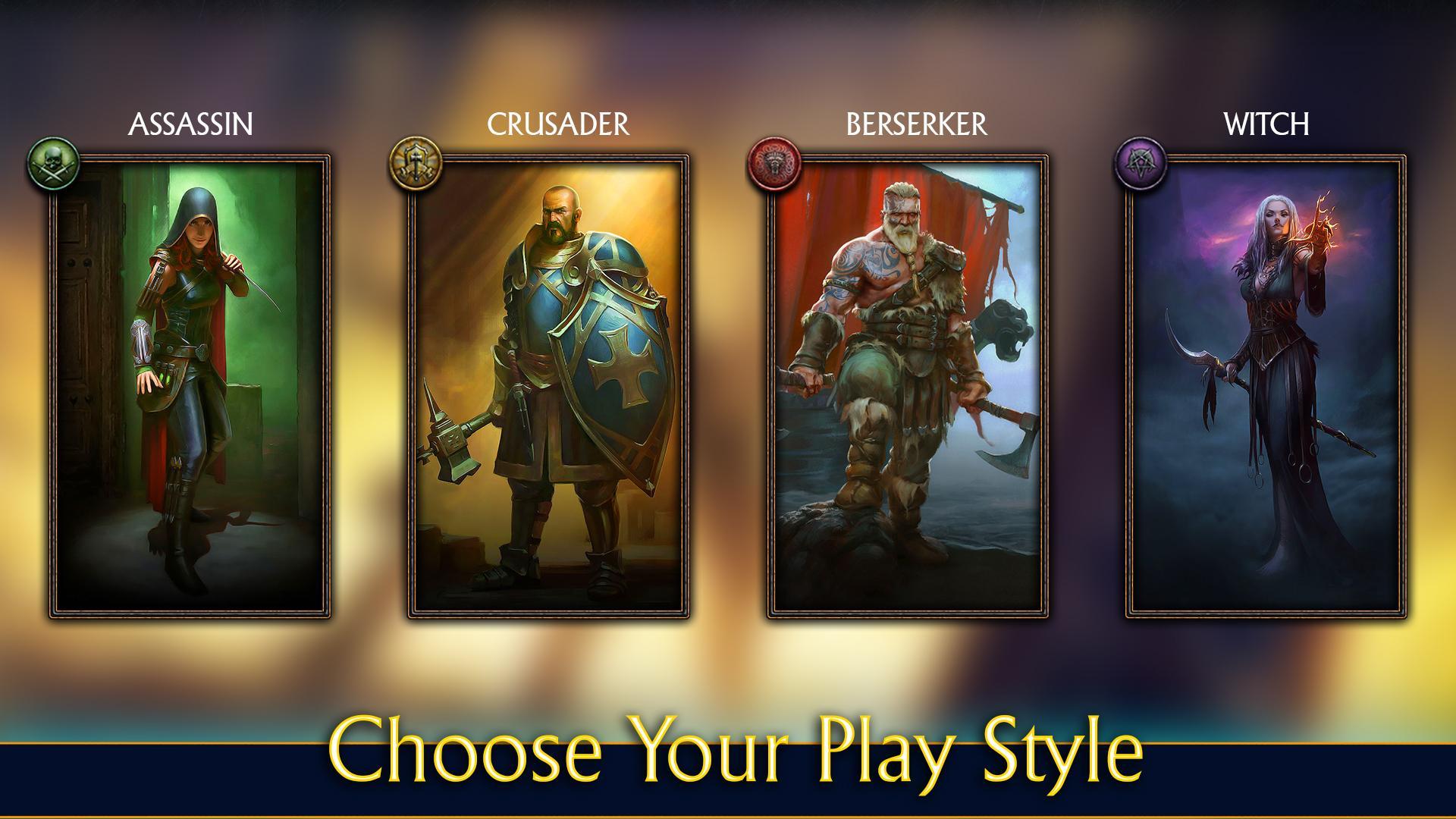 In Ironbound: Card Battles RPG you can choose from: a mighty Berserker, a powerful Crusader, a stealthy and deadly Assassin, a magic-wielding Witch, or even a reckless Pirate.