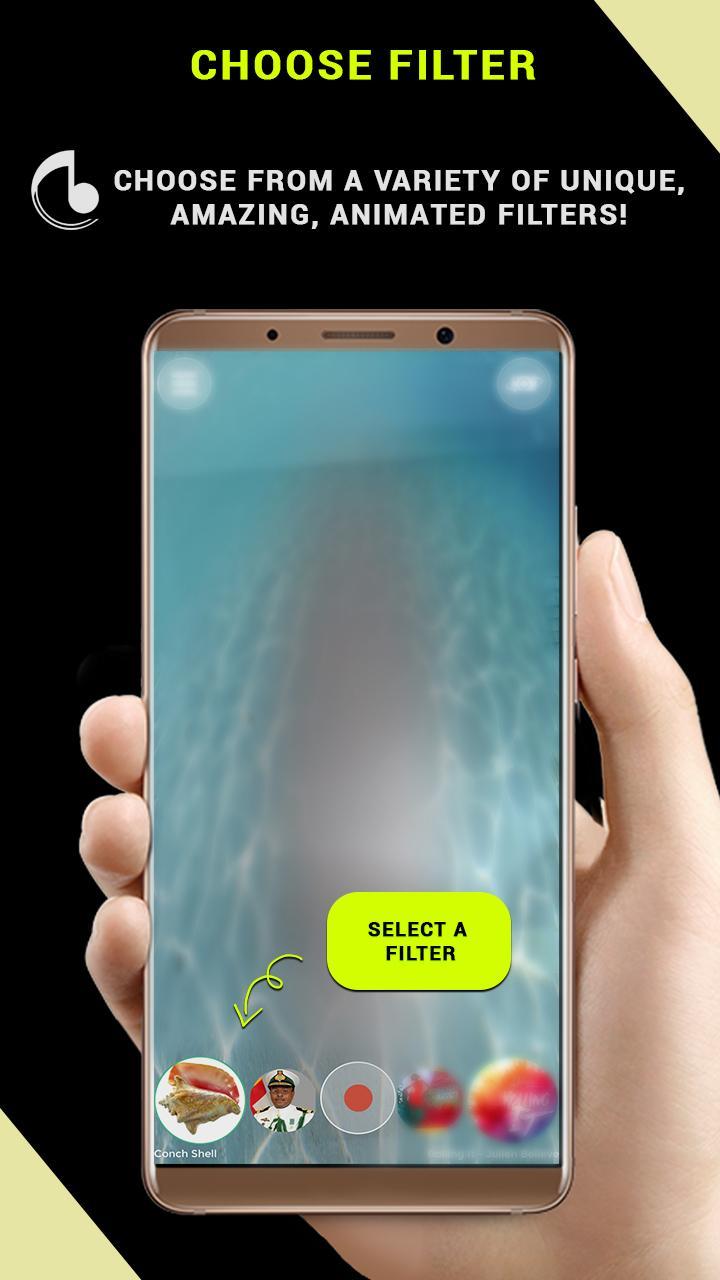 *ビデオ録画 - あなたが選んだ曲に唇を同期しながら、素晴らしいフィルターの1つを着ている自分のビデオを録音します。