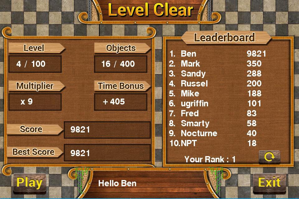 ★検索して隠されたオブジェクトを見つけるときにリーダーボードを倒します