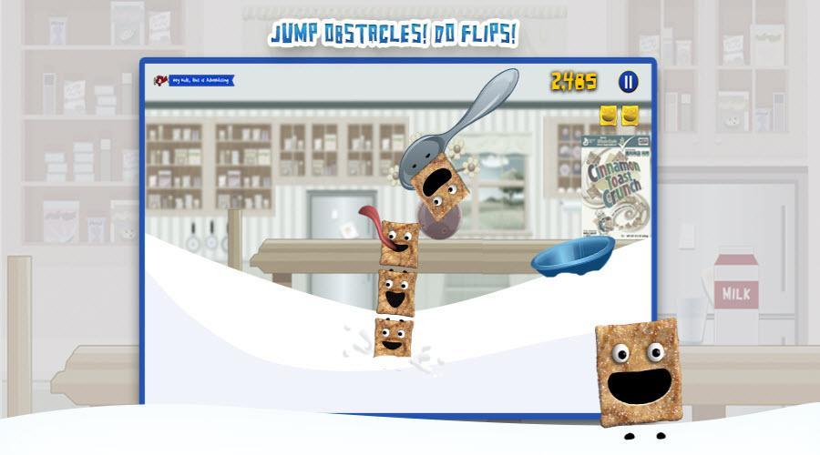 ゲームのオブジェクトは、スムーズに走って楽しんでいることです(途中でシナモントーストクランチを舐めたりむち打ちしながら)。パワーアップはあなたをより速く動かすのに役立ちます。バンプ、つまずき、なめる、またはこぼれは、あなたを遅くするでしょう。食べるのに十分なほど遅くさせないでください!