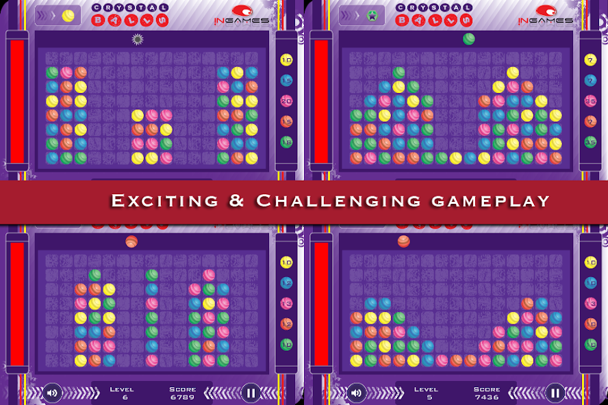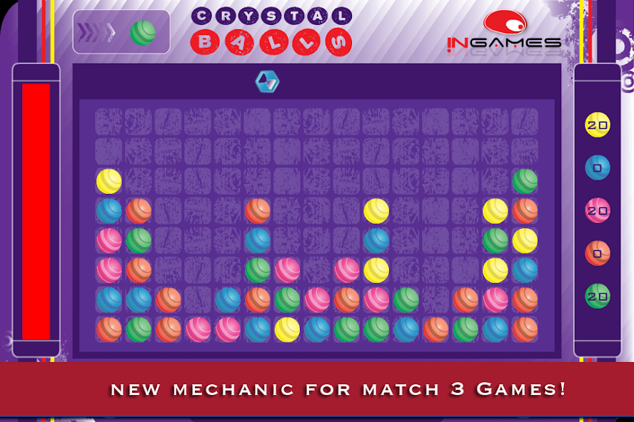 Crystal Ballsは、シンプルで中毒のマッチ3パズルゲームで、同じ色の他のボールとマッチするために動くボールをドロップダウンする必要があります。