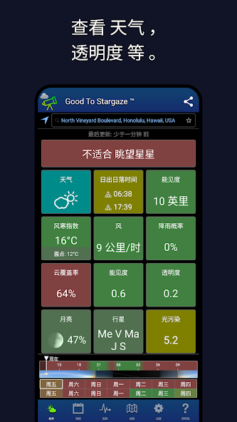 Good To Stargazeいつですか?すべての便利なツールで、天気予報、透明性、透明性、軽質汚染をご覧ください。アマチュアとプロの天文学者、肉眼的視聴、双眼鏡、または望遠鏡に最適です。