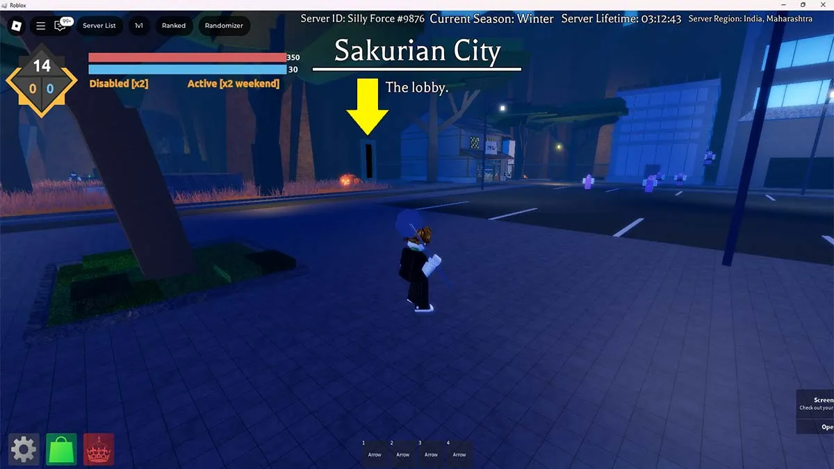 While Curses spawn in different areas of the Sakurian City, you'll need to visit Hueco Mundo to find Hollows. To reach there, look for the portal door next to Urahara's Shop near the park region. Enter the portal by spending $600 in-game cash and you'll be teleported to the dark world of Hueco Mundo. Wait for the Hollows to appear (they spawn every few minutes) and kill them to receive Candy and Candy Corn. They are easy to defeat: simply walk back and forth while using the M1 attack.