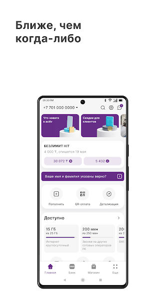 Manage your tariff and services, make payments and shop, buy phones and gadgets and pay by installments in the super application from Kcell.