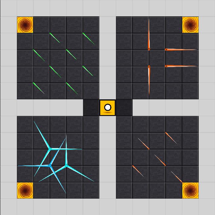 승리하려면 영웅을 출구로 잡아 모든 움직이는 날을 피해야합니다.