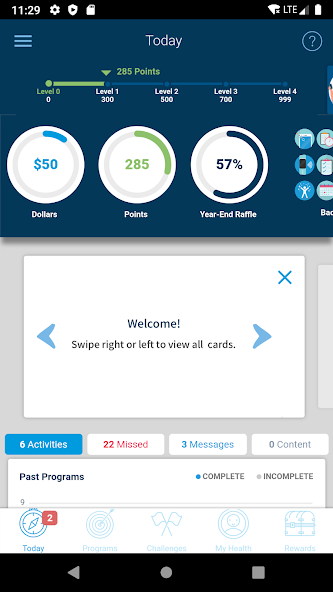 • 건강과 복지에 대한 헌신에는 몇 가지 주요 인정과 보상이 필요합니다. 1. 좋아하는 소매 업체에서 기프트 카드를 사용할 수있는 달러를 벌 수 있습니다. 2. 앱 내에서 활동을 완료하여 포인트를 얻습니다. 더 많은 포인트를 얻을수록 수준이 높아집니다. 수준이 높을수록 더 많은 돈을 벌 수 있습니다. 3. 당신이 달성 한 중요한 이정표를 인식하기 위해 배지를 얻으십시오.