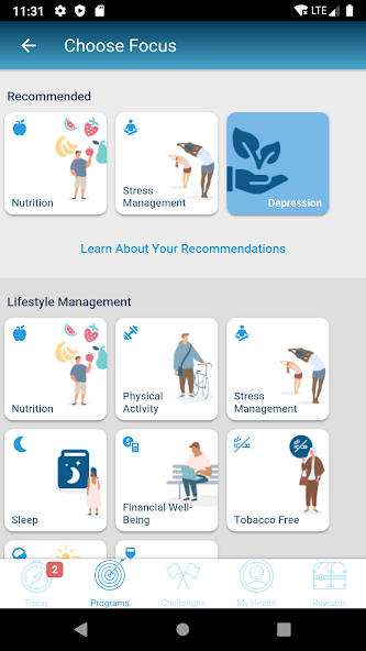 • 귀하의 홈 화면은 개인화 된 매일 할 일 목록으로, 복지 여행을 통해 귀하를 안내합니다. 귀하를 위해 개인화 된 매일 활동, 내용 및 메시지는 우선 순위로 표시됩니다.