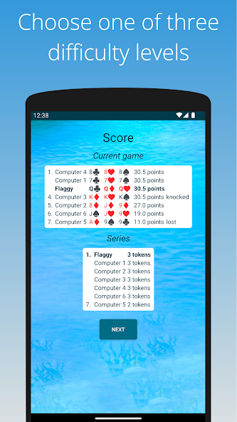 마침내 모든 플레이어는 손을 보여줍니다. 점수가 가장 낮은 플레이어는 게임을 잃습니다. 한 명 이상의 플레이어가 가장 낮은 점수를 얻으면 각각의 점수가 가장 낮습니다. 그러나 점수가 가장 낮은 선수 중 한 명이 노크된다면,이 사람만이 게임을 잃습니다. 한 선수가 3 개의 에이스를 보유하고 있다면 다른 모든 플레이어는 점수에 관계없이 게임을 잃습니다.