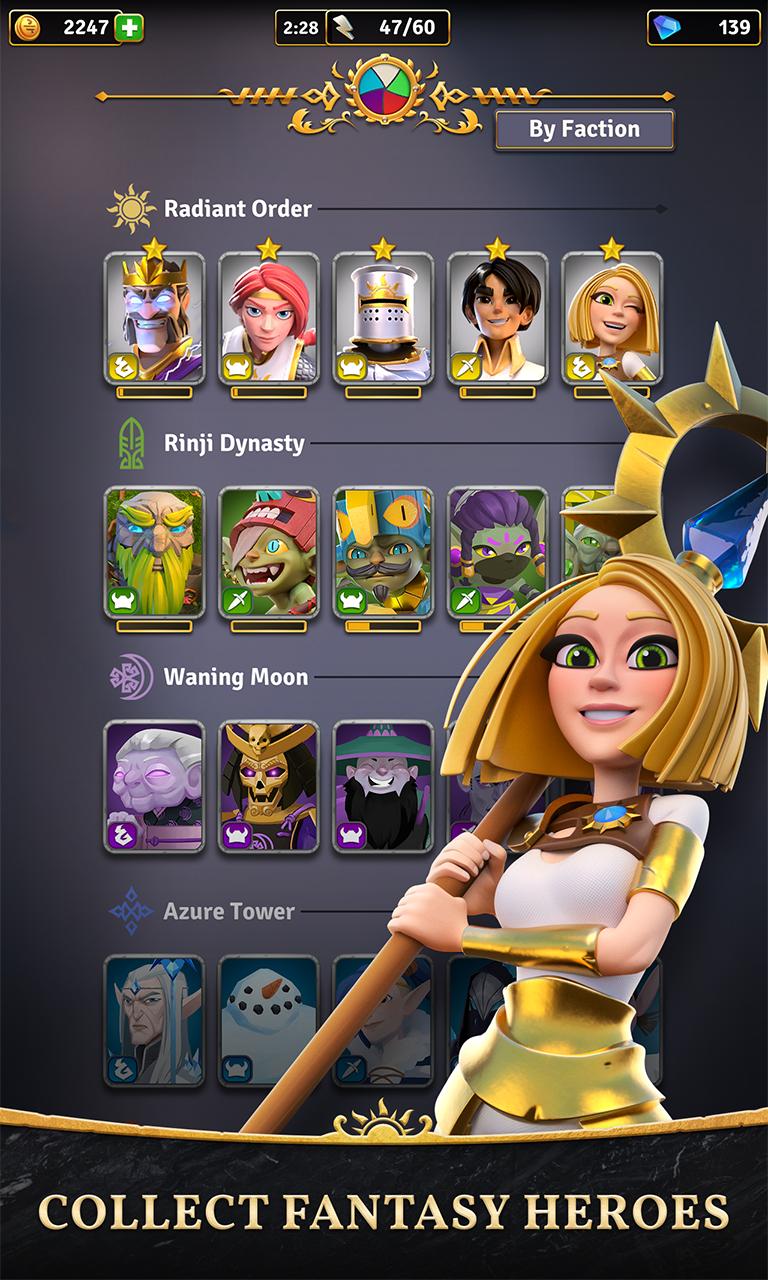 Valiant Heroes 들의 컬렉션을 키우고 진정한 잠재력을 발표하고 전장에서 전략적으로 그들을 서사시 무리와 보스를 이길 수 있습니다!