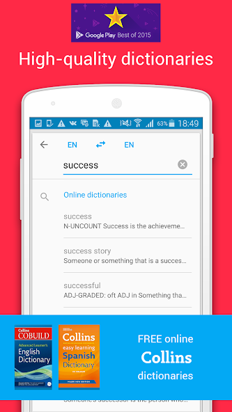 ✓ 90+ dictionaries for 12 languages including Collins dictionaries