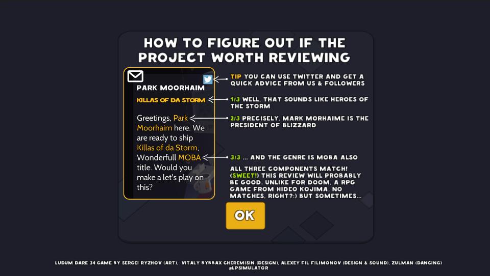 Read e-mails carefully. Try to guess a real-existing game by matching Author, Title, and Genre.