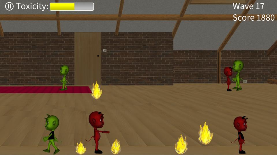 The main idea is simple, these spooky little devils have a bad sulfur smell and they want to set your home on fire, yes they want to burn your house down! Thankfully, they hate holy water so all you need to do is to take that and shoot them with it before you get overrun by them. Do not forget to put out all the fires; the fire smoke and the sulfur smell increases the toxicity on the room and it will take you down.