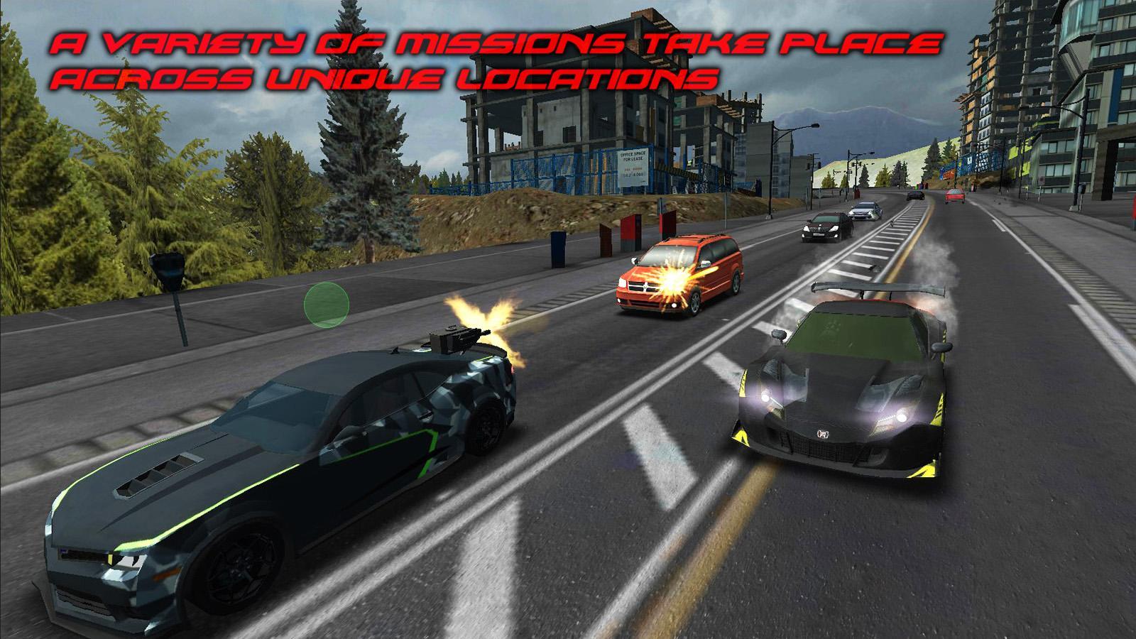 The game takes place across several missions ranging in settings such as urban cities, highways, forest, and mountain ranges.