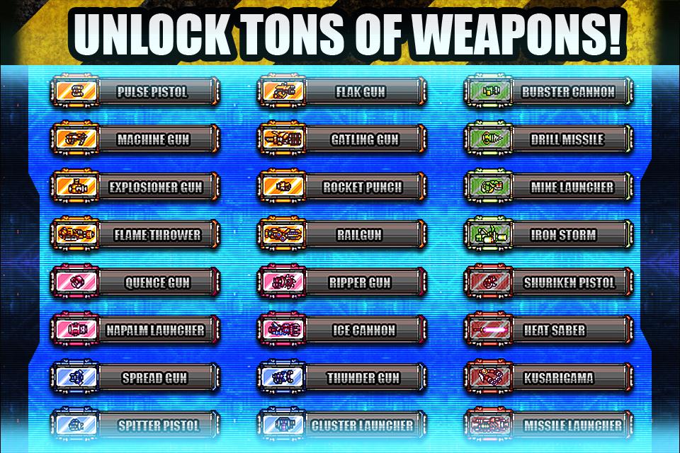 Each time you manage to survive at an enemy wave you will earn credit as reward. You can spend your credits to unlock new weapons and equipment ( ready for the next battle!!)