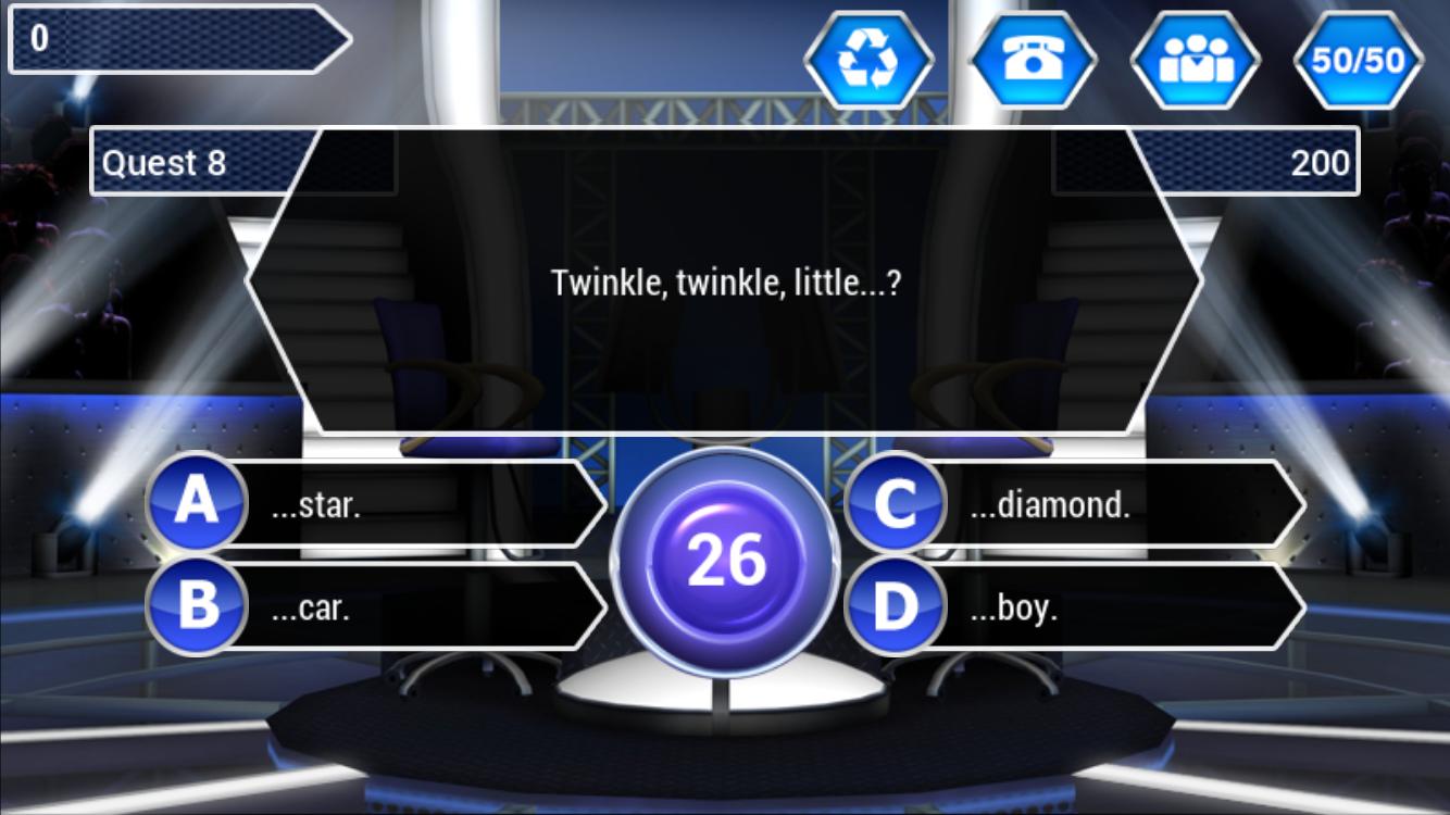 Millionaire 2017 -the latest version Millionaire on Mobiles now is based on the famous Game Show TV-Millionaire. It is one of games which are being interested by many people because of all wonderful and useful things from it. Millionaire 2017 is not only the awesome game to entertain but also is a huge treasure of knowledge in the entire fields. The game will help you improve your knowledge quickly. This is one of the most awesome things that the game can bring for you all.