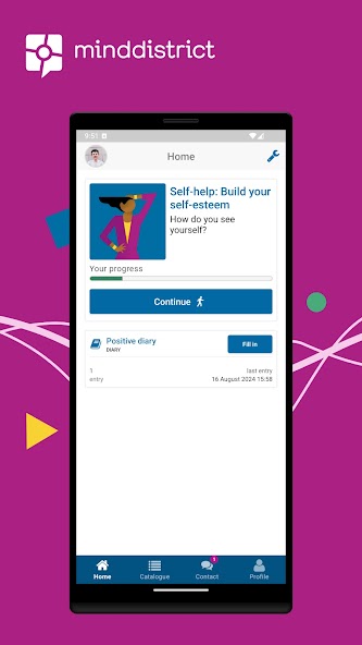 Master your own wellbeing with Minddistrict's diaries and secured messaging.