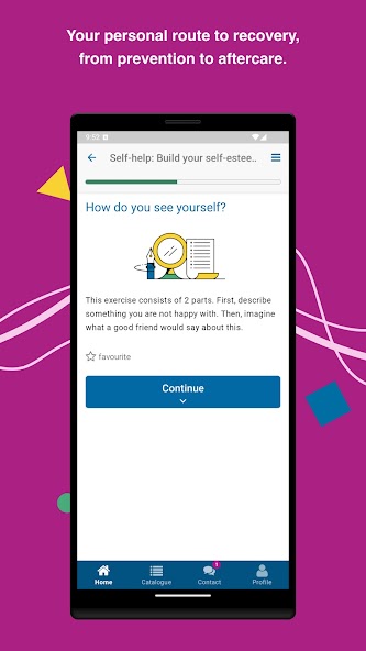 Do you experience a lot of stress? Want to reduce your alcohol intake? Some issues can be tackled right away. Select one or more trainings from the self-help catalogue in the app.