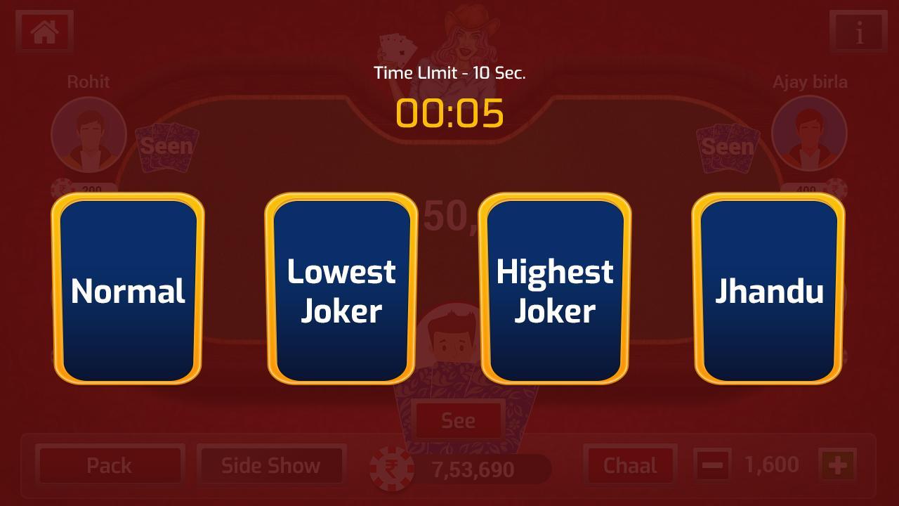 Invite your friends to private tables and make a mega party of it. You will meet new friends at any one of the exclusive tables in our reserved category. Play from a variety of styles including: Classic, Lowest card joker, Highest card joker and Jhandu.