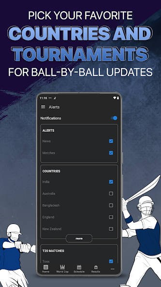 Instant Alerts - Select favorite teams and type of alerts for important updates during matches