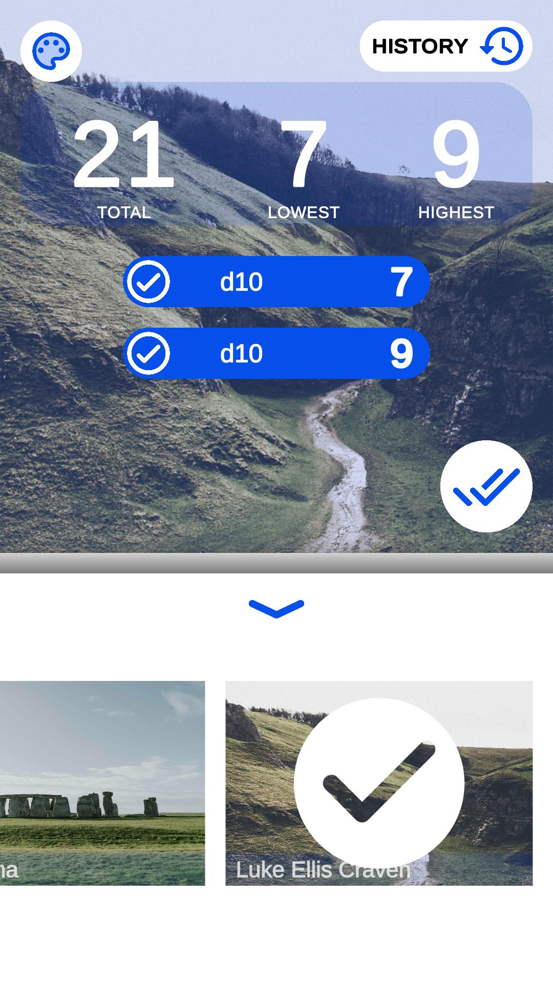 The app will show the total, the highest and lowest result of the dice you rolled. You can also add modifiers to your dice rolls and they will be automatically applied to the results.