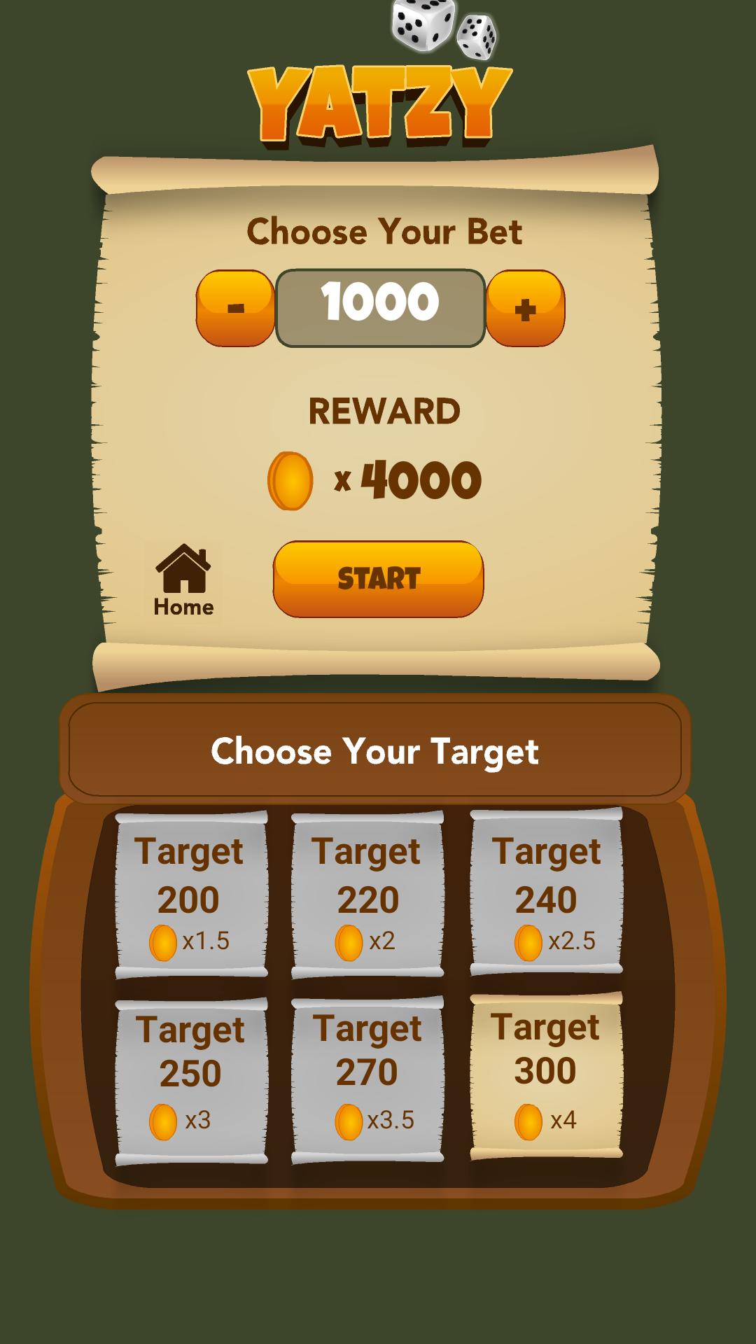 upper section with the possibilities of winning a bonus on upper section and a lucky Yatzy on the