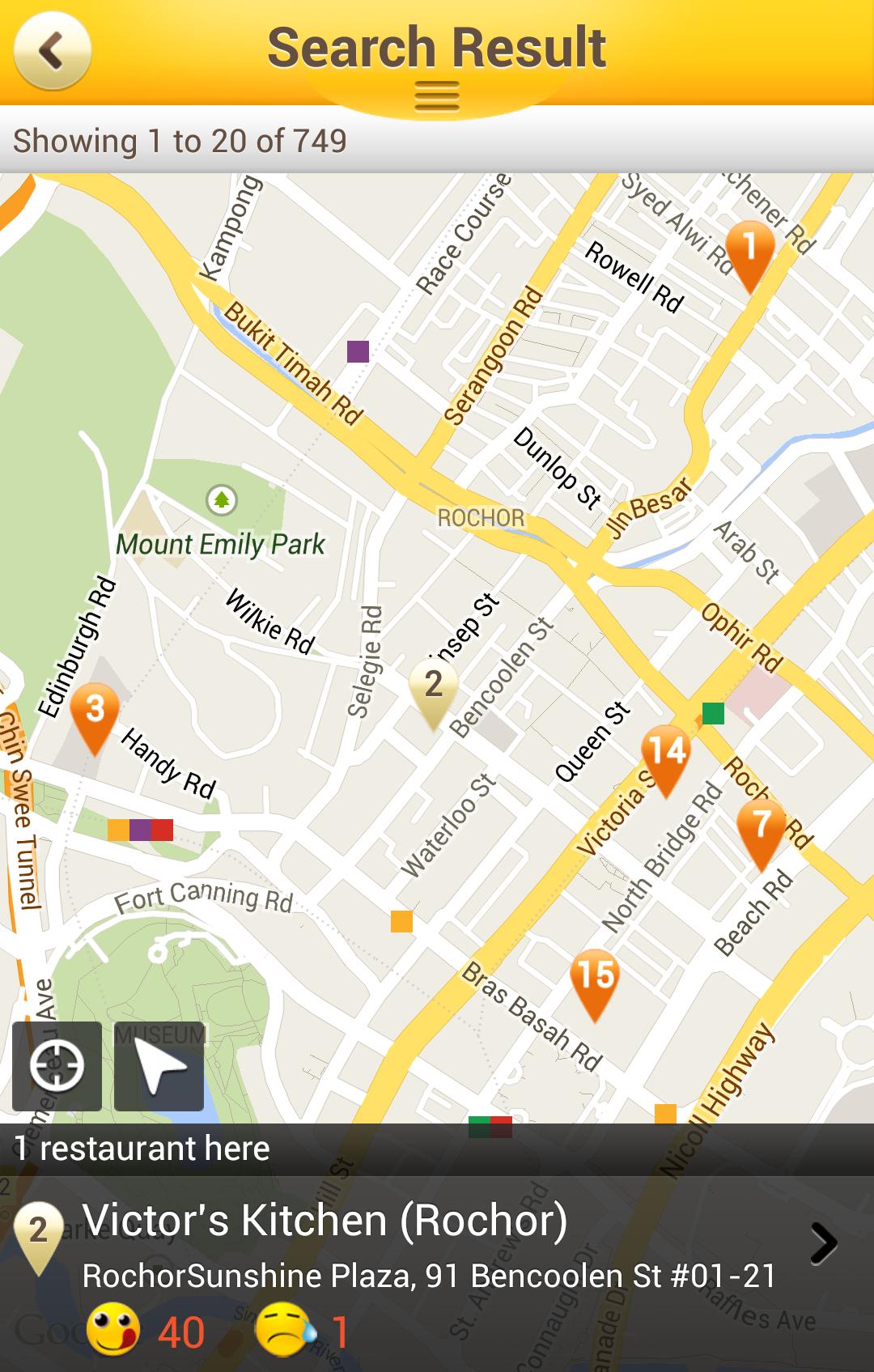 - Locate nearby restaurants in Singapore via GPS and get directions