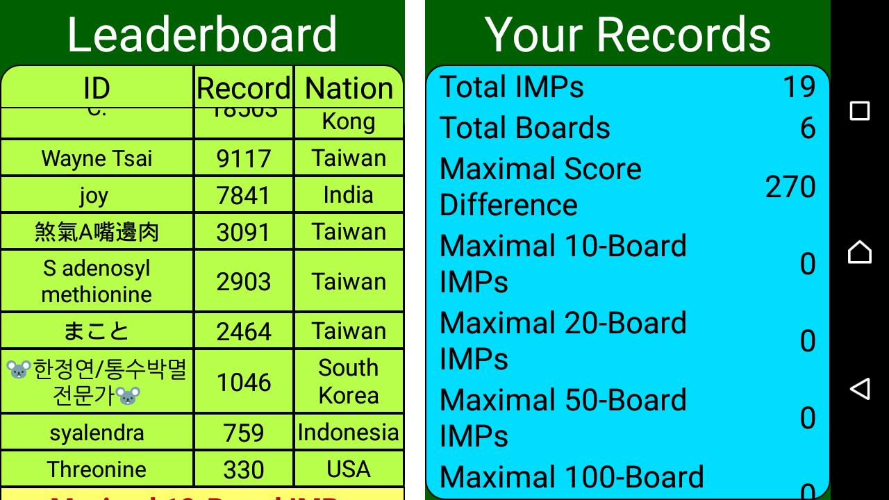 # Accumulate Total IMPs and calculate Average IMPs every time you play.