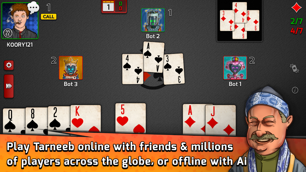 Play all kinds of Tarneeb, Egyptian, Syrian and Normal