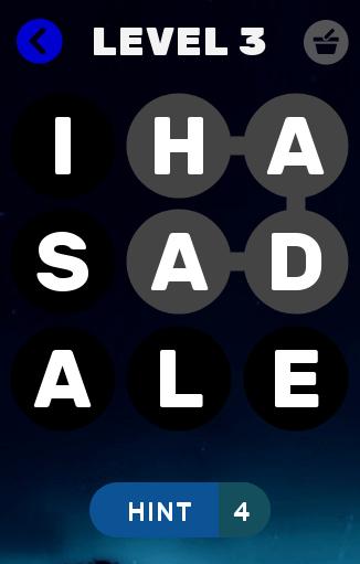 Neste jogo, é necessário procurar palavras e comprá -las das letras especificadas.
