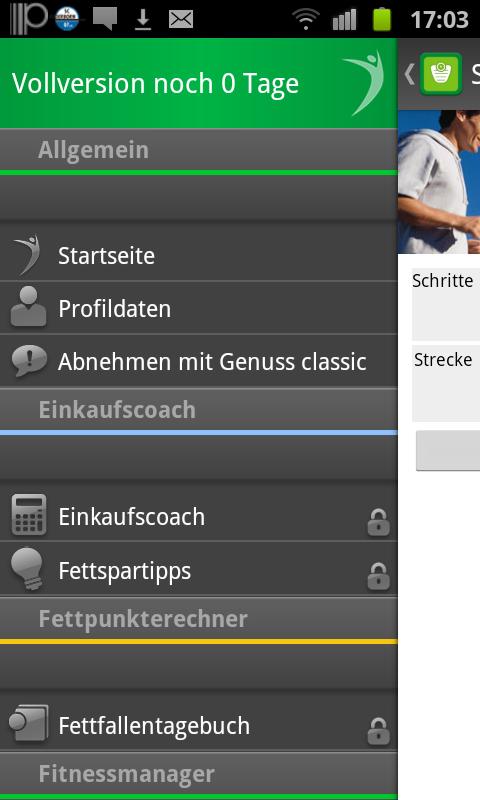 Se você decidir participar de "perder peso com prazer", o aplicativo também estará totalmente disponível para você após 30 dias. A funcionalidade de algumas áreas é restrita sem participação.