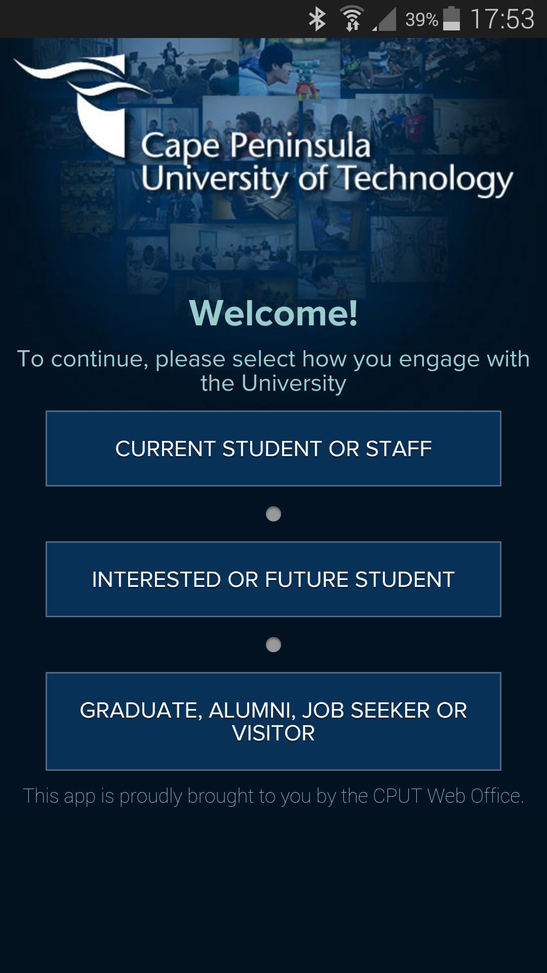 Você tem problemas para usar ou instalar este aplicativo? Suas perguntas são respondidas aqui: http://www.cput.ac.za/mobile/support