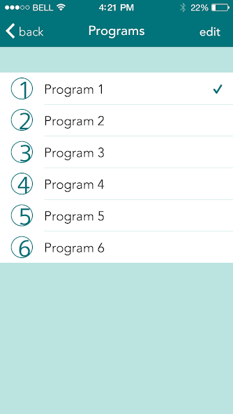 Exibição: a tela do seu dispositivo iOS se torna uma tela visual para controlar seus aparelhos auditivos.