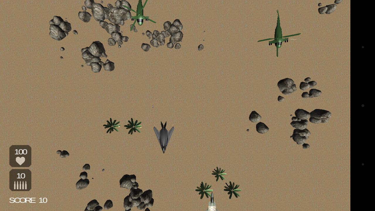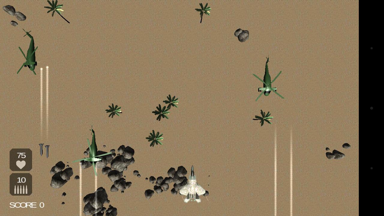 Voe acima da área de guerra no seu jato. Quanto mais você voa, mais pontuação você faz.