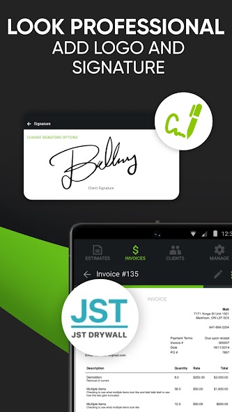• Procure profissional - mostre aos seus clientes que você é o contratado em que eles devem confiar no trabalho; com estimativas e faturas personalizadas de aparência profissional.