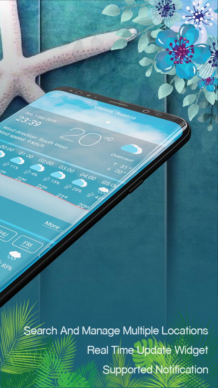 A previsão do tempo ao vivo detecta o clima em sua localização atual automaticamente. Existem muitas informações na previsão do tempo, que incluem condição climática, pressão atmosférica, umidade relativa, distância da visibilidade, precipitação em diferentes unidades, ponto de orvalho, velocidade do vento e direção, além de dez dias de previsão futura, também previsão meteorológica a cada hora.